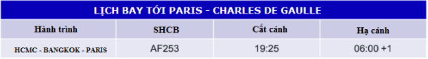 Hãng hàng không Air France sẽ khai thác 1 chuyến bay mỗi tuần từ Thành phố Hồ Chí Minh đến Paris (CDG) vào các ngày Chủ nhật hàng tuần cho đến cuối tháng 9.