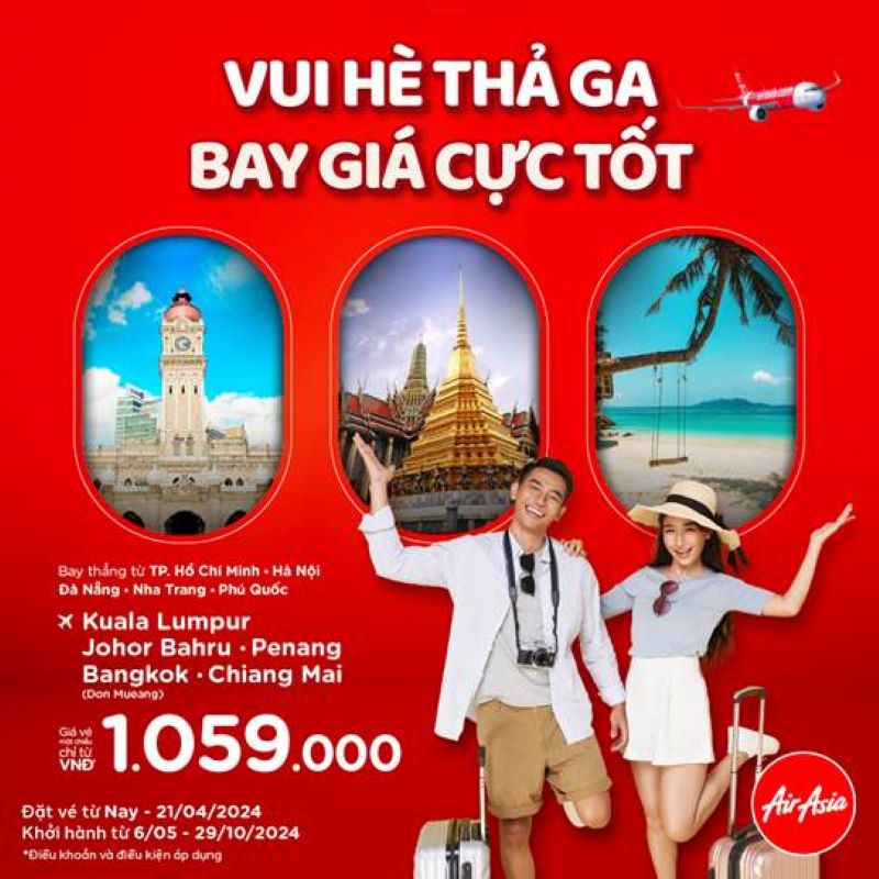 Hãng hàng không AirAsia vừa tung deal hot, giá cực tốt cho mùa hè, giá chỉ từ 1.159.000 VNĐ cho các chặng bay tới Thái Lan/ Malaysia khi khởi hành từ Việt Nam.