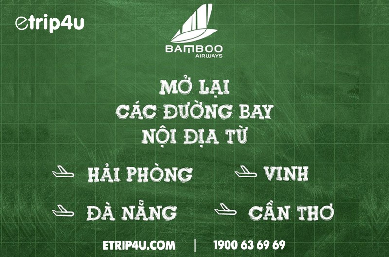 Các đường bay nội địa sẽ liên tục được Bamboo Airways đưa vào khai thác trở lại. Mọi nhu cầu đặt vé, bạn vui lòng gọi cho Etrip4u theo hotline 1900 63 69 69.