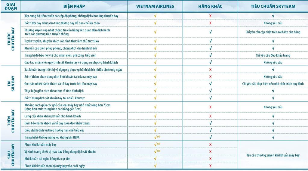 Bản tổng hợp dưới đây đã thống kê đầy đủ các biện pháp mà Vietnam Airlines thực hiện, như một lời cam kết gửi tới khách hàng.