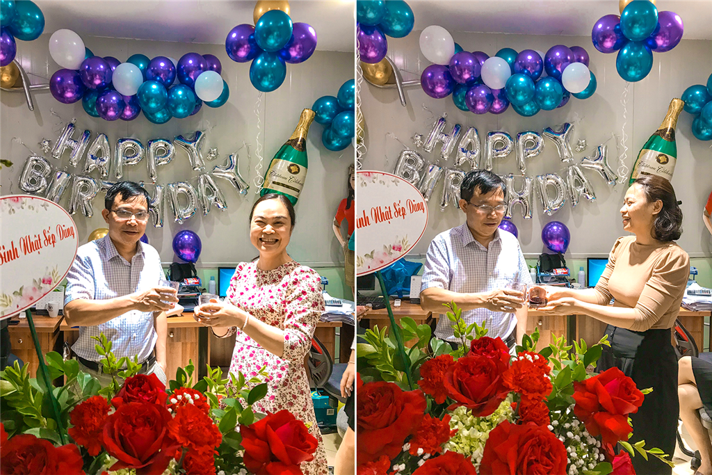 Mọi người cùng nhau nâng ly và gửi tới Sếp những lời chúc tốt đẹp nhất
