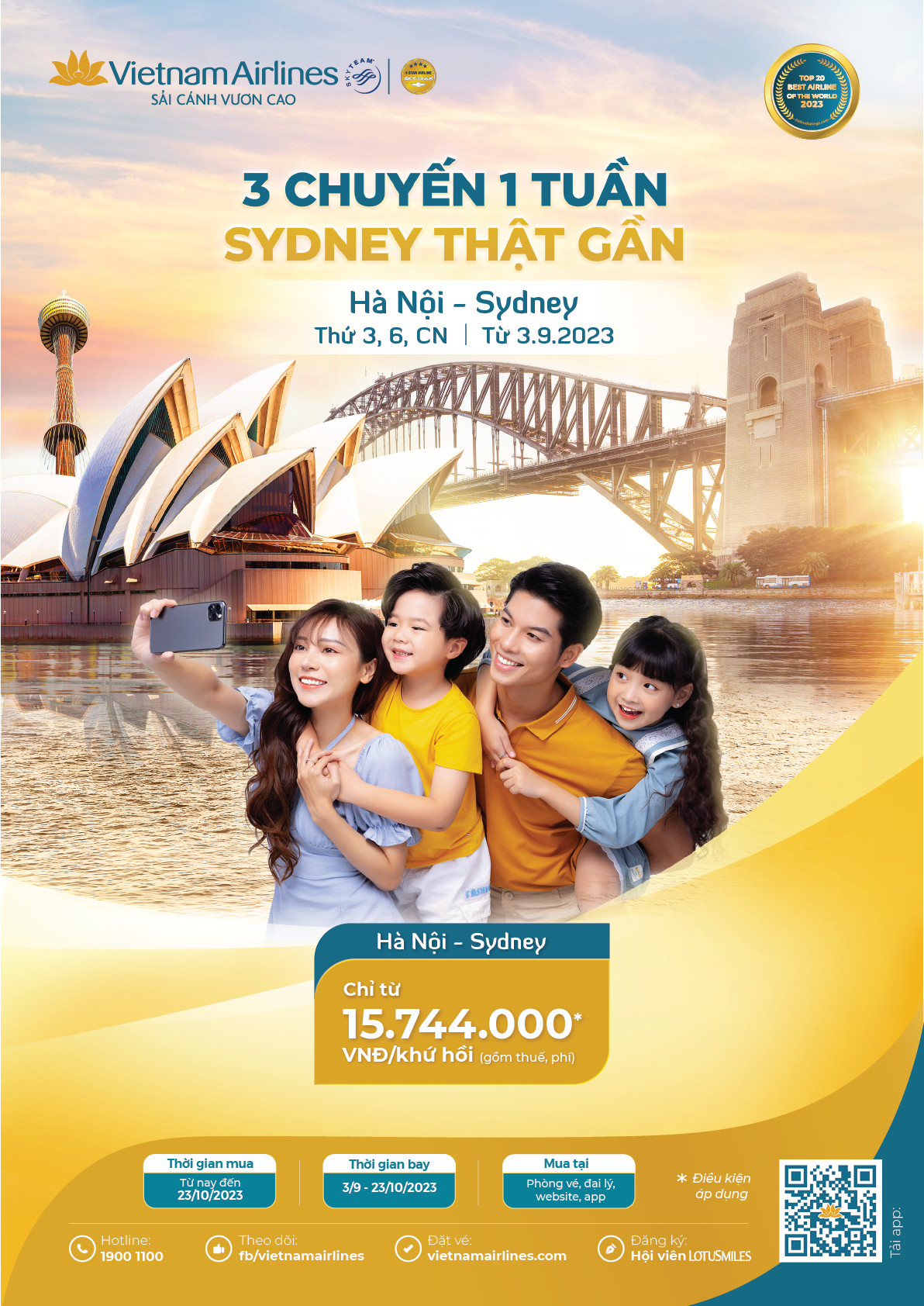 Chương trình tăng tần suất HAN - SYD từ 3/9/23/023 của Vietnam Airlines