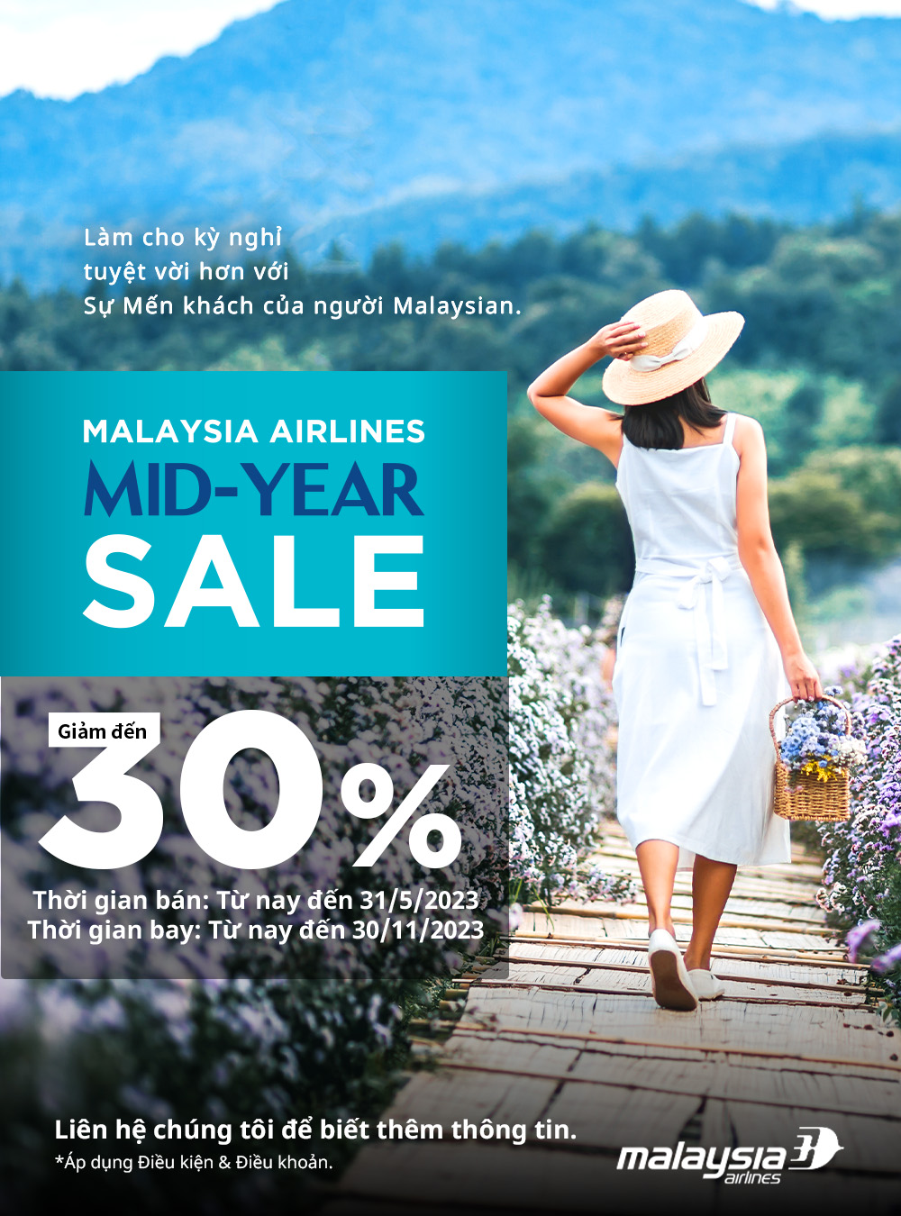 Chương trình ưu đãi Mid Year Sale giảm đến 30% cùng Malaysia Airlines