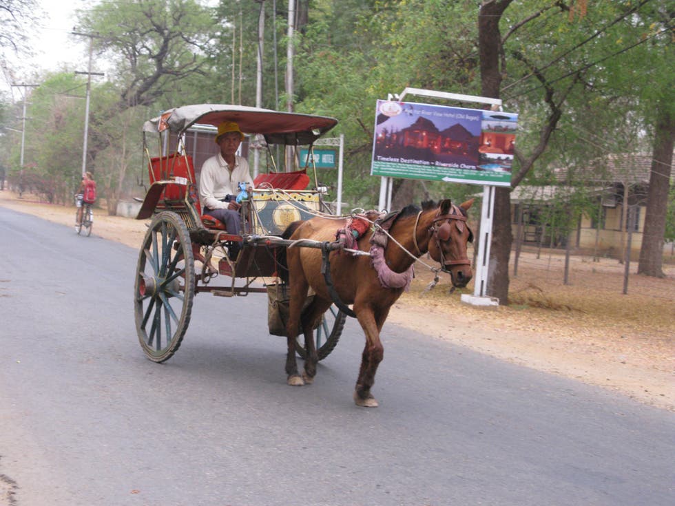 Xe ngựa: không ít người sẽ ngạc nhiên khi xe ngựa là phương tiện phổ biến ở Bagan. Giá thuê khoảng 300-400.000đ/ngày cho 2-3 khách.