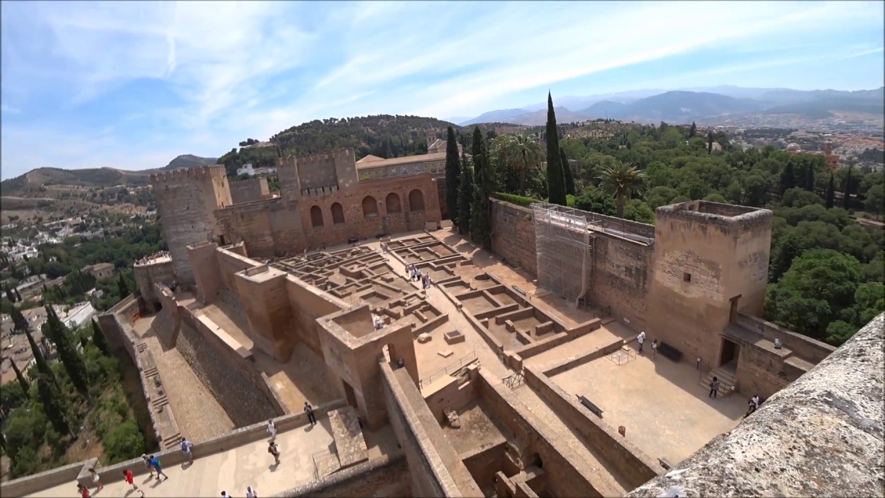 Pháo đài Alcazaba nằm trên đỉnh ngọn đồi Alhambra, nơi mà bạn có thể chiêm ngưỡng toàn cảnh thành phố Granada và dãy núi Sierra Nevada hùng vĩ. Pháo đài được xem là kiến trúc lâu đời nhất của quần thể Alhambra với những bức tường tàn tích đánh dấu thời huy hoàng của đế chế Hồi giáo. Ngày nay, trong khuôn viên công trình vẫn còn chút dấu tích của những công trình như trại lính, phòng tắm. Bên trong pháo đài hiện vẫn còn bảo tồn rất nhiều hiện vật từ thời chiến tranh