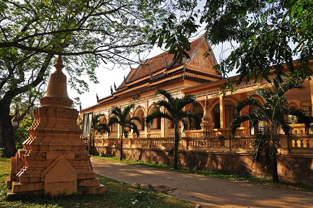Chùa Wat Damnak từng là cung điện hoàng gia của vua Sisowath. Ngày nay, nơi này là một trường học, một viện dạy may vá cho những cô gái trẻ người bản địa. Chùa còn sở hữu một thư viện khổng lồ với hơn 11.000 sách, báo, bách khoa toàn thư,… với nhiều thứ tiếng như tiếng Khmer, tiếng Anh, tiếng Pháp. Nếu bạn muốn tìm một nơi thanh bình và yên tỉnh thì chùa Wat Damnak là một điểm đến lý tưởng.