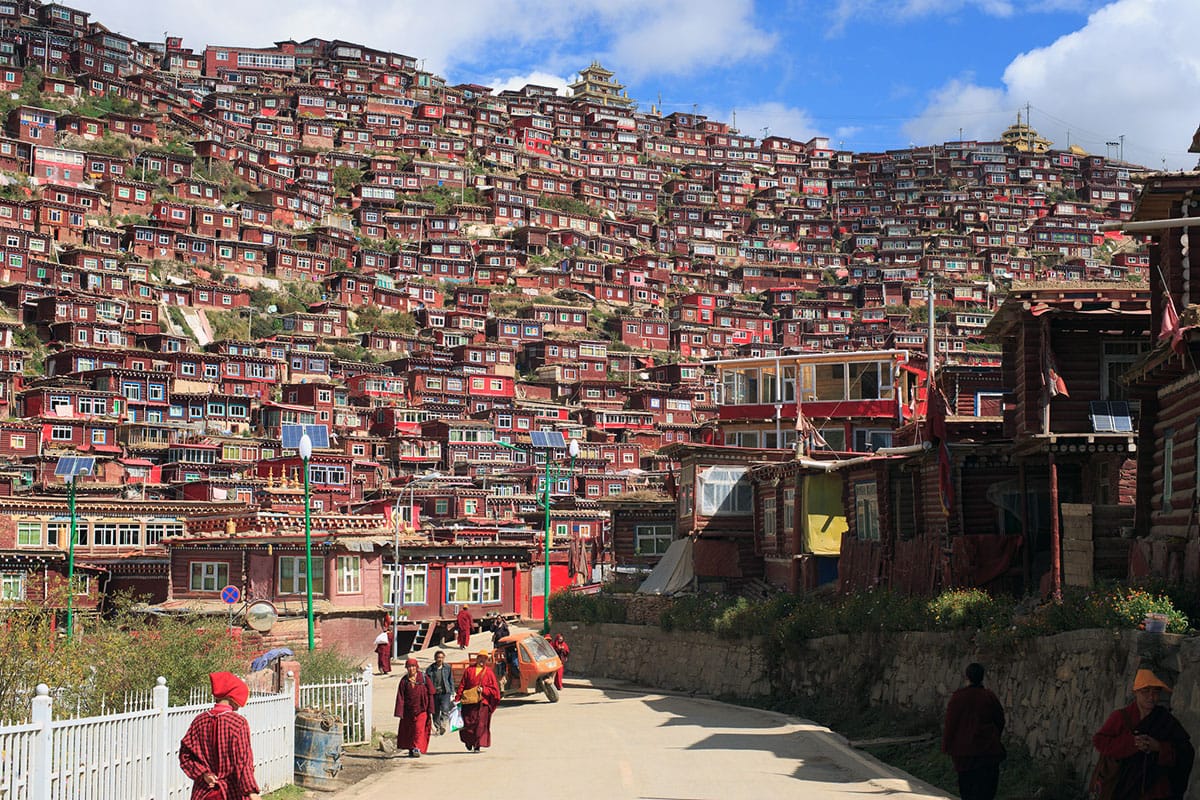 Đây là học viện Phật giáo Tây Tạng lớn nhất trên thế giới, có tới hơn 20 nghìn tăng ni. Học viện bao gồm hàng ngàn ngôi nhà gỗ màu đỏ, xây dựng trên một ngọn đồi tạo nên cảnh đẹp tựa một dòng sông đỏ chảy trong vài dặm.