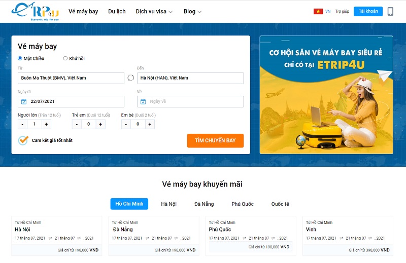 Hướng dẫn đặt vé giá rẻ với hệ thống của Etrip4u