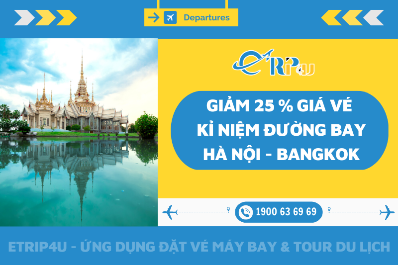 Giảm 25 % giá vé kỉ niệm đường bay Hà Nội - Bangkok