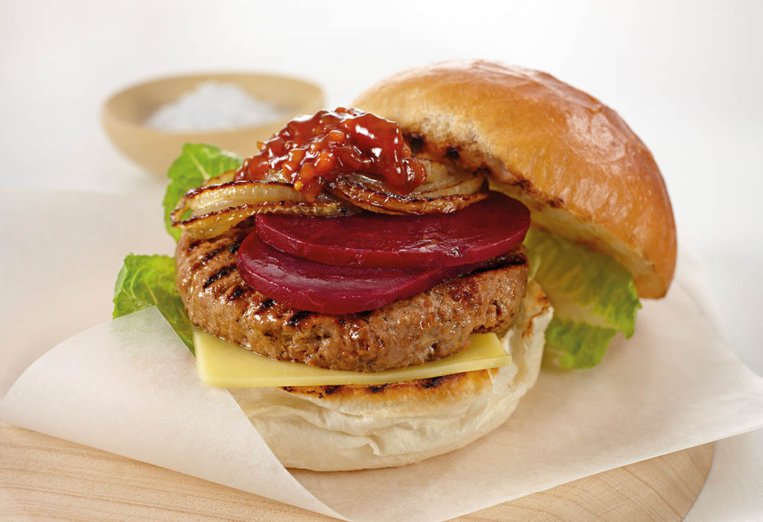 Khi đến đây, bạn phải thử một lần món hamburger củ dền vì món này khá độc đáo. Nguyên liệu chính gồm có rau xà lách, cà chua, bánh cá chiên, sốt cà chua, tương ớt hay mayonnaise. Thành phần đặc biệt không thể thiếu là củ dền cắt lát nhỏ, nhờ vật mà hương vị bánh khá đặc biệt và màu sắc củ dền giúp chiếc bánh hamburger thêm hấp dẫn.