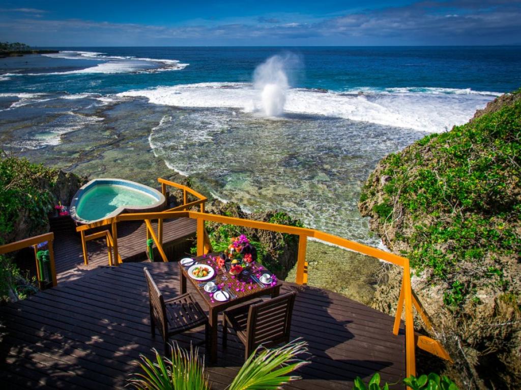 Khu nghỉ mát nằm rất xa trung tâm đảo Fiji, bạn chỉ có thể đến đây bằng máy bay trực thăng hoặc thuyền. Có 16 biệt thự mái tranh, bể ngâm mình riêng tại mỗi biệt thự và có view nhìn ra đầm phá Beqa. Bạn sẽ có trải nghiệm sự tự do trong ốc đảo riêng của mình, những chuyến đi rừng và lặn ngắm rùa, cá heo.
