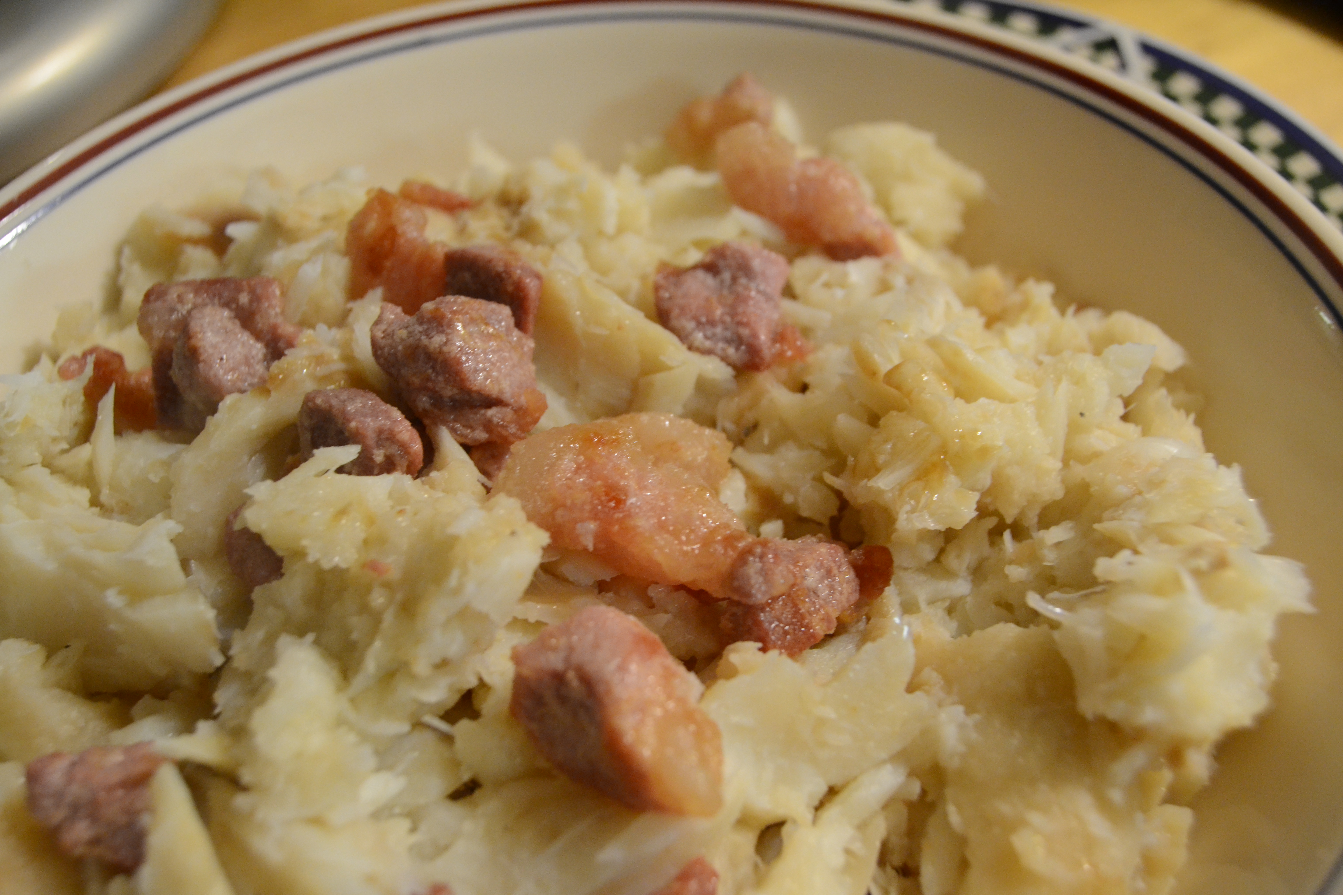Món ăn này được các thủy thủ sáng tạo nên, là một sự kết hợp giữa cá tuyết muối và bánh mì. Người ta sẽ ngâm bánh mì trong nước cho mềm ra, cá tuyết muối cũng được ngâm nước để giảm độ mặn, sau đó tất cả đem đi luộc rồi trộn cùng với tóp mỡ.