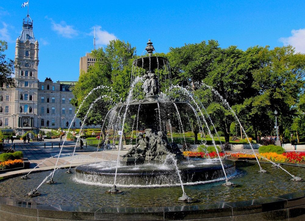 Lấy cảm hứng từ cung điện Louvre của Paris, Parliament hill là một kiến trúc hùng vĩ luôn nằm trong top các điểm du lịch nổi tiếng nhất ở Quebec. Mặt trước cung điện là đài phun nước Tourny – món quà từ Peter Simons là một nhà kinh doanh lớn ở Canada đã dành tặng thành phố Quebec nhân dịp kỷ niệm 400 năm ngày thành lập.