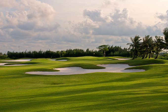 Mặc dù chịu sự ảnh hưởng của nước biển nhưng sân golf quanh năm xanh mướt nhờ được phủ loại cỏ Paspalum phù hợp với điều kiện khắc nghiệt của thổ nhưỡng nơi đây. Những hàng dừa xanh chạy dọc theo các fairway trên rough tạo nên một đặc trưng của khu nghỉ dưỡng ven biển thu hút cả golfer và non-golfer.