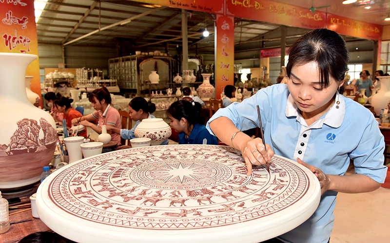 Trang trí lên sản phẩm tại làng gốm Chu Đậu