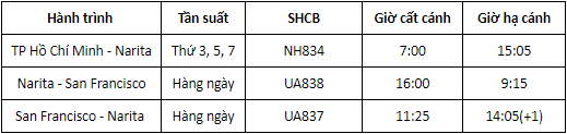 TP Hồ Chí Minh - San Francisco (transit tại Narita - kết hợp cùng hãng hàng không All Nippon Airways)