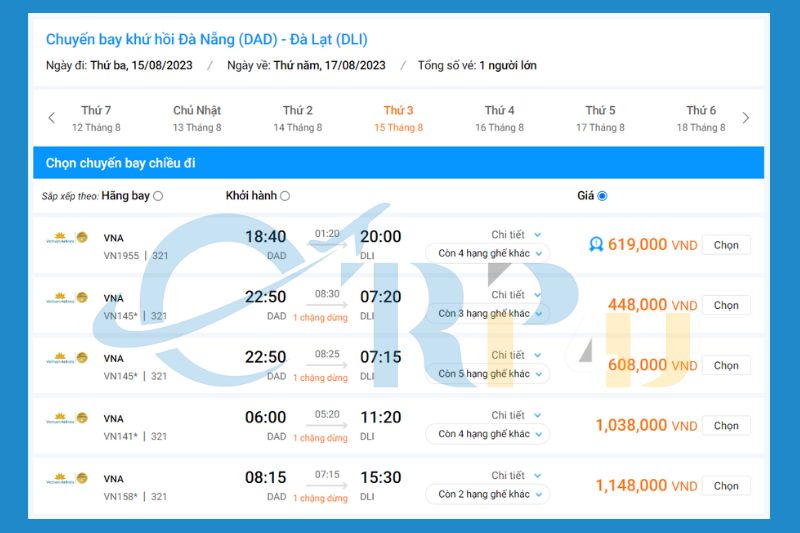 - Bạn nên so sánh giá vé máy bay từ Đà Nẵng đi Đà Lạt của nhiều hãng hàng không khác nhau và nhiều hạng ghế khác nhau để tìm ra ưu đãi tốt nhất.