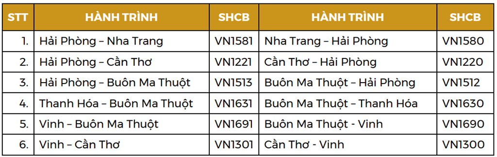 Cập nhật lịch bay Vietnam Airlines