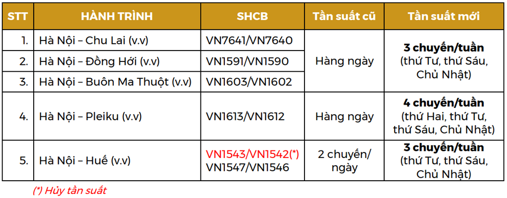 Các chuyến bay giảm tần suất: