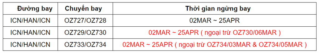 Ngày 26/02, Bamboo Airways ra thông báo dừng các chuyến bay từ Đà Nẵng/ Nha TRang – Incheon (tần suất 7 chuyến khứ hồi/ tuần).